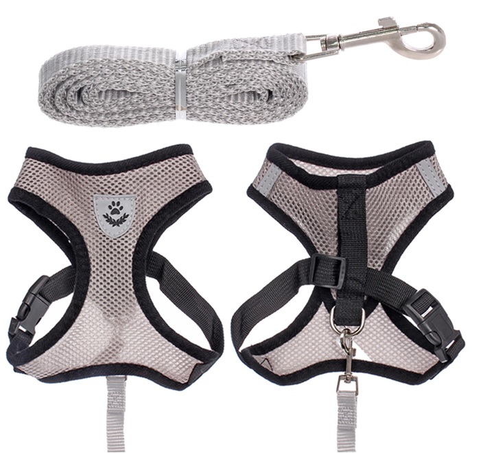 Шлейка с поводком 118см "Sweet puppy" размер M, цвет серый (1/1)