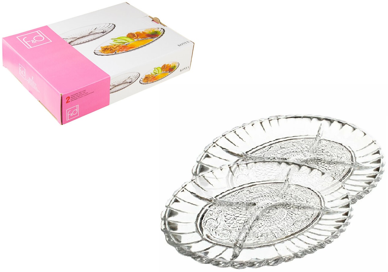 Блюдо Konya-F&D 260*185мм овал. с раздел. 2шт (менажница) стекло(1/12)